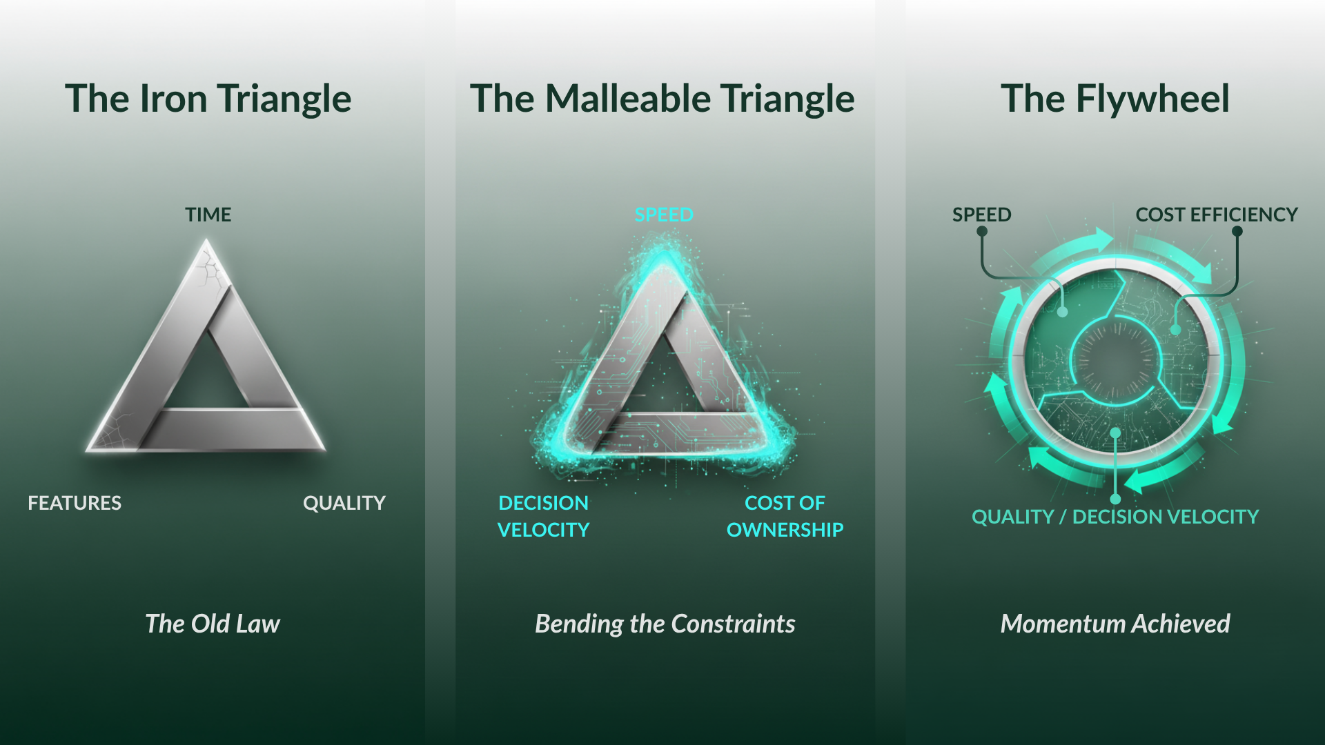 Organizations failing to make this shift scale inefficiency. Those that do, unlock momentum and bend the Iron Triangle toward advantage.