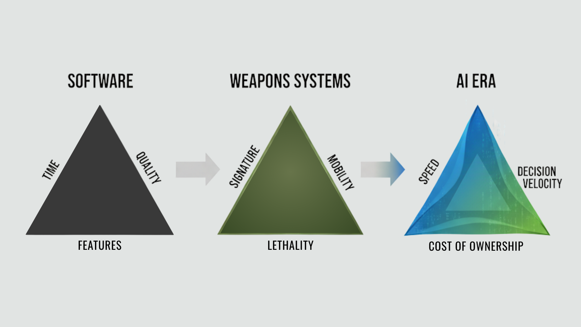 If you want help bending your triangle, contact me. I have spent my career helping organizations navigate these trade-offs. Weapons systems or AI systems, the physics stay the same.