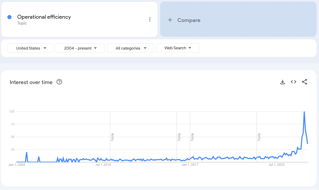Search interest for “operational efficiency” (Google Trends - Picture below) is higher today than at any point since Google began tracking it. Everyone wants to be efficient. Yet the rise in curiosity has not produced a rise in capability.